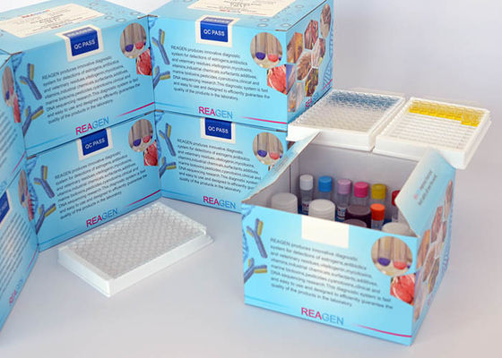 O REAGENTMO teste ELISA indireto competitivo de tetrodotoxina é um ensaio imunológico para a detecção quantitativa e sensível de tetrodotoxina em amostras de água e amostras de peixe-balão.O extrato da amostra e os calibradores são pipetados para os poços de ensaio, seguidos de um anticorpo monoclônico TTX para iniciar a reação.Após esta incubação de 90 minutos os poços são lavados com solução de lavagem, em seguida, adicionar enzimas rotuladas anticorpos IgG anti-rato, incubação, em seguida, adicionar a solução de cor,Terminar a reação pelas soluções de parada, measured the amount of color in each well with a microplate reader at OD 450nm The color of the unknown samples is compared to the color of the calibrators and the TTX concentration of the samples is derived.